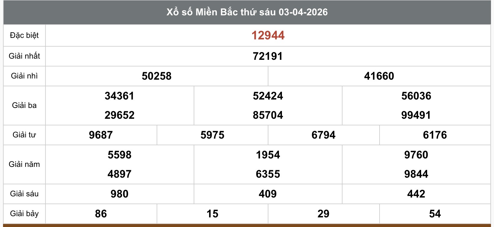 Kết quả xổ số miền Bắc