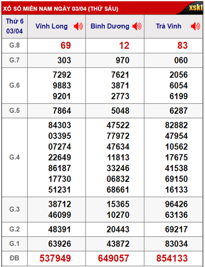 Kết quả xổ số miền Nam