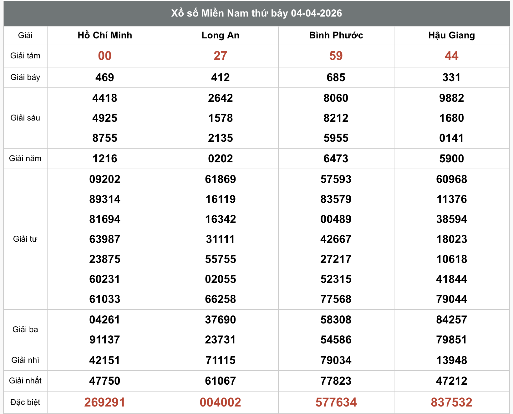 Kết quả xổ số miền Nam