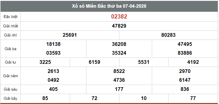 Kết quả xổ số miền Bắc