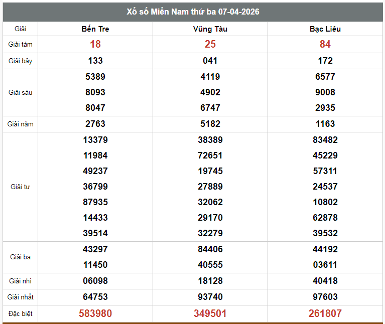 Kết quả xổ số miền Nam