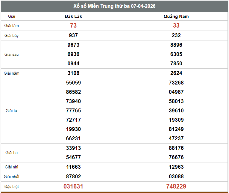 Kết quả xổ số miền Trung
