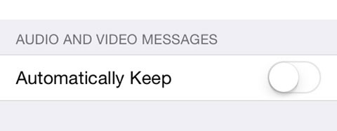 Trong mục Settings của ứng dụng tin nhắn có thêm tùy chọn tự động lưu tin nhắn âm thanh audio hoặc video. Mặc định là chúng sẽ bị xóa đi sau một khoảng thời gian ngắn để tiết kiệm dung lượng bộ nhớ.
