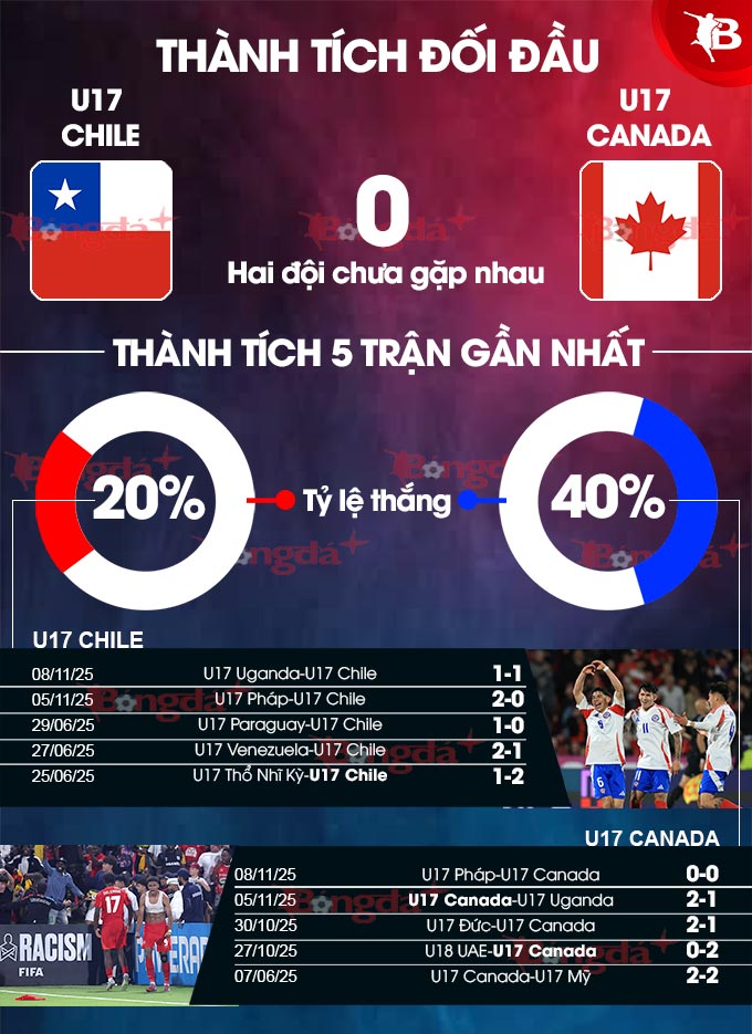 BONGDAPLUS dự đoán tỷ số U17 Chile vs U17 Canada