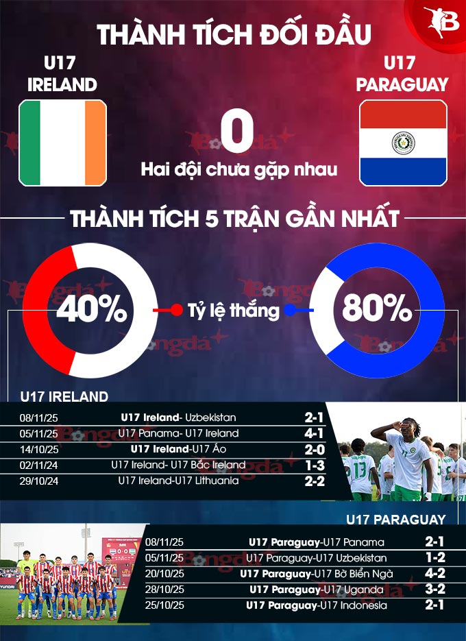 BONGDAPLUS dự đoán tỷ số trận U17 Ireland vs U17 Paraguay
