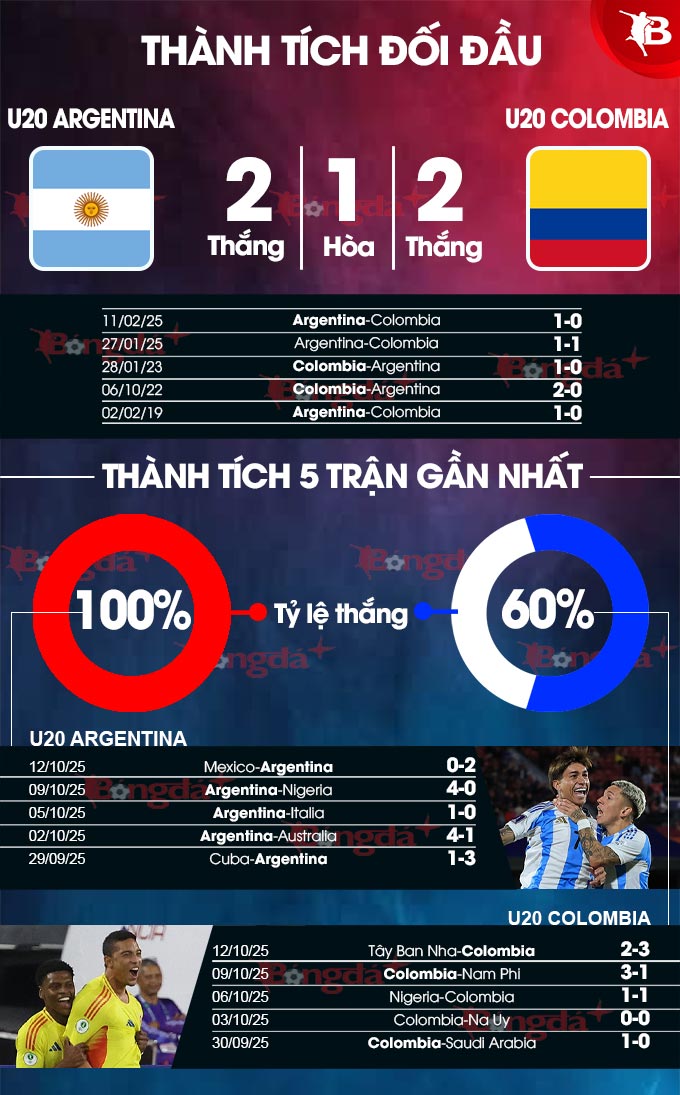 BONGDAPLUS dự đoán tỷ số U20 Argentina vs U20 Colombia