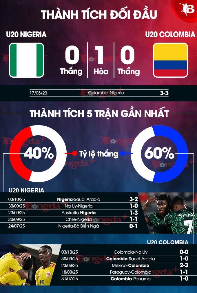 Phân tích phong độ U20 Nigeria vs U20 Colombia