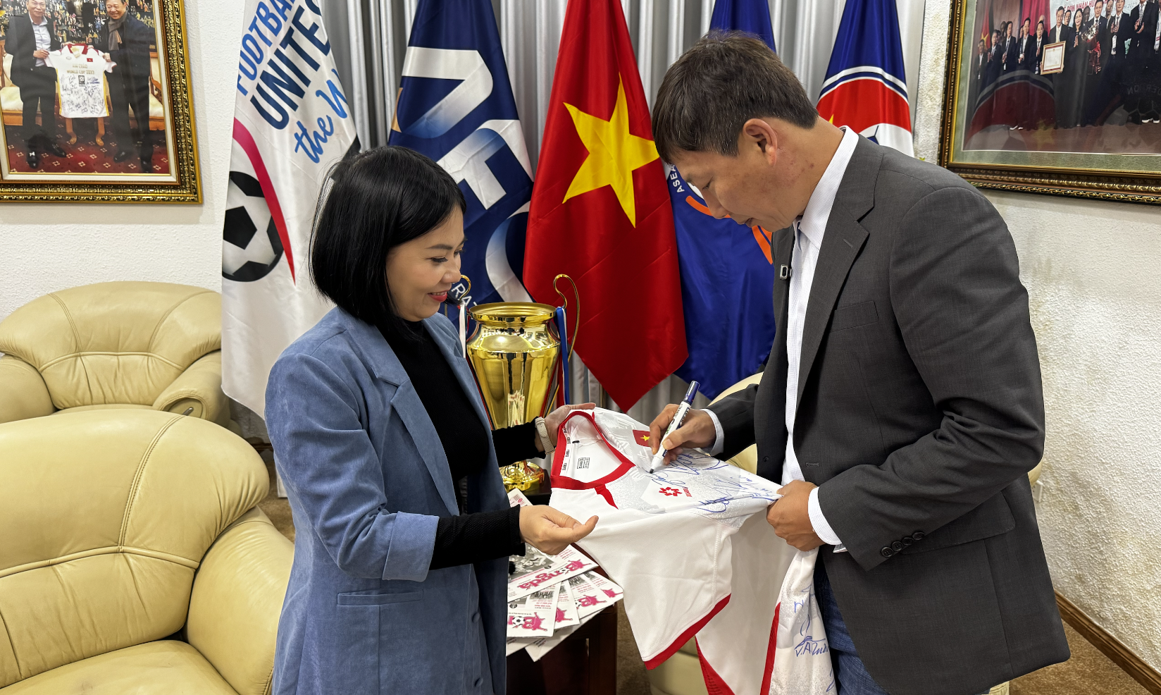HLV Kim Sang Sik đã đến Hội trường VIP tại LĐBĐ Việt Nam