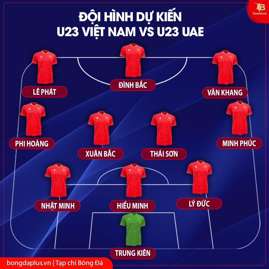 Trên hàng công, Lê Phát gần như chắc chắn sẽ được HLV Kim tiếp tục xếp đá chính sau màn trình diễn ấn tượng ở vòng bảng. Cầu thủ 18 tuổi mang đến sự đột biến, điều mà U23 Việt Nam rất cần trong một trận cầu then chốt. Ở cánh đối diện, Khuất Văn Khang vẫn là sự lựa chọn không thể thay thế. Trong khi đó, vị trí đá cắm sẽ do Đình Bắc đảm nhiệm.