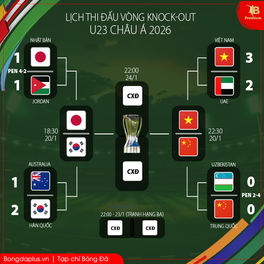 Không còn gì để mất, U23 Australia buộc phải đẩy cao đội hình để tìm bàn gỡ hoà hòng nuôi hy vọng, nhưng lực bất tòng tâm. Thua chung cuộc 1-2, đội bóng trẻ xứ chuột túi đã phải dừng bước, trong lúc U23 Hàn Quốc sẽ vào bán kết gặp U23 Nhật Bản.