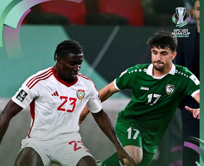 U23 UAE và U23 Syria đều có được 3 điểm sau 2 lượt trận bảng B - VCK U23 châu Á 2026. Chính vì thế, màn so tài giữa đôi bên chẳng khác nào “chung kết” phân định vị trí thứ 2, sau khi Nhật Bản đã chắc suất đi tiếp với ngôi đầu. Do bất lợi hơn về hiệu số bàn thắng bại (-4 so với -1), U23 Syria buộc phải thắng nếu muốn đi tiếp. Đội bóng này tràn lên tấn công ngay ở đầu trận. Phút thứ 7, Al Aswad có cơ hội dứt điểm cận thành nhưng hậu vệ UAE áp sát khiến cú đá của đội trưởng không thể dứt điểm như ý.