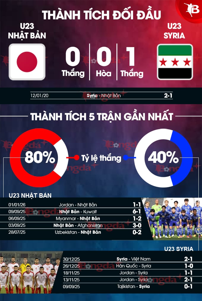 U23 Nhật Bản mang theo 8 cầu thủ đang học Đại học để tham dự VCK U23 châu Á 2026. Trong khi đó, U23 Syria có trong tay lực lượng tốt nhất cho chiến dịch lần này.