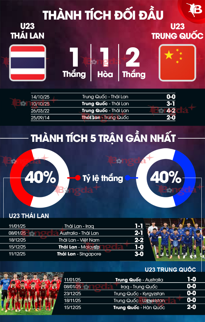 Phân tích dữ liệu chuyên sâu U23 Thái Lan vs U23 Trung Quốc
