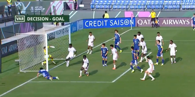 VÀO!!!!! Bàn thắng thứ 3 cho U23 Nhật Bản sau tình huống trọng tài check VAR xem cú đánh đầu của Shusuke Furuya đã đi qua vạch vôi chưa. Kết quả là, U23 Nhật Bản có bàn thắng thứ 3.