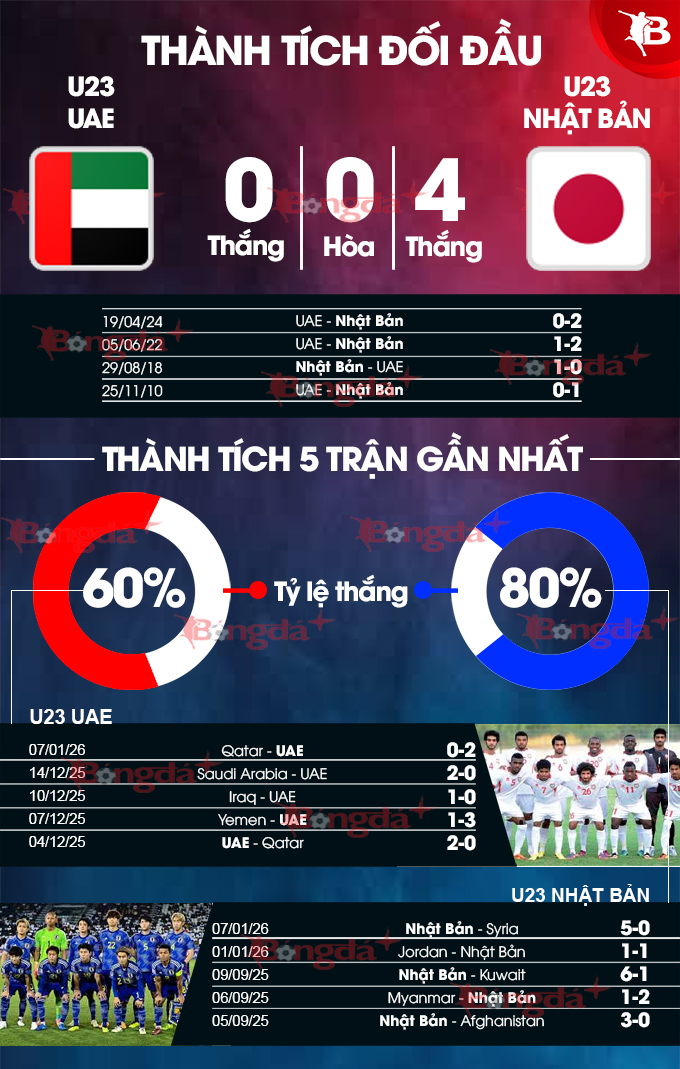 Ở trận ra quân, U23 Nhật Bản thắng đậm U23 Syria 5-0, trong khi U23 UAE đánh bại U23 Qatar 2-0. Kết quả này giúp Nhật Bản tạm vươn lên dẫn đầu bảng B. Kết quả trận đấu này có thể giúp NHM Việt Nam hình dung phần nào về đối thủ, nếu thầy trò HLV Kim Sang Sik vào chơi tứ kết.