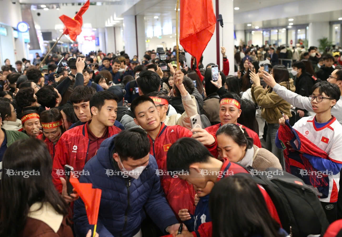 Các cầu thủ tuyển U23 Việt Nam chính thức có mặt tại sân bay Nội Bài trong vòng tay yêu thương của NHM
