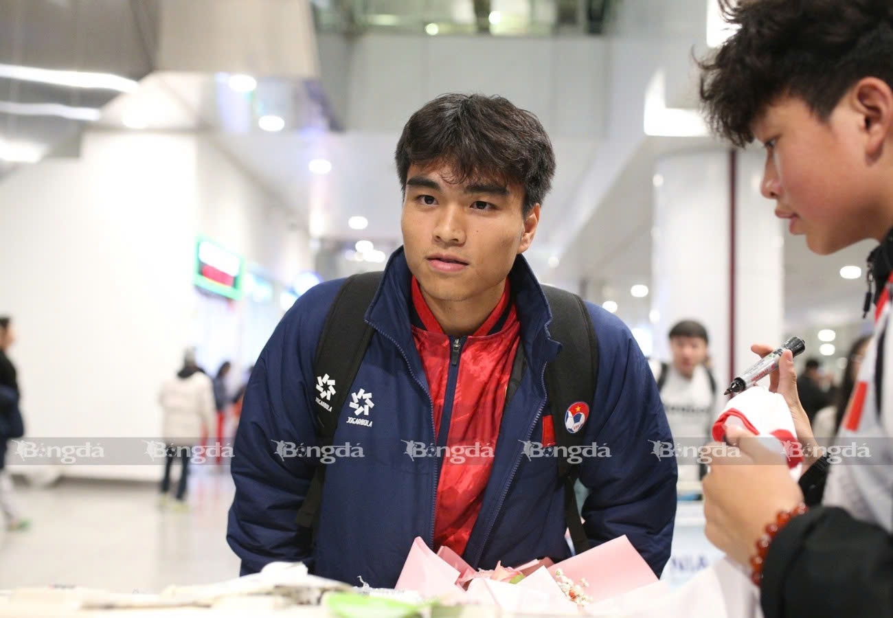 Các cầu thủ Văn Thuận, Công Phương và Viktor Lê vui vẻ giao lưu và chụp ảnh cùng người hâm mộ tại sân bay. Trong khi đó, lực lượng an ninh tại sân bay đã có mặt để tránh tình trạng quá khích và chen lấn đối với các cầu thủ.