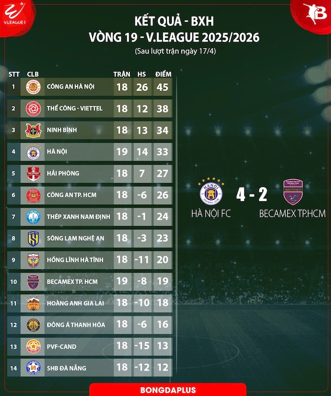 Sau bàn thua, Hà Nội tiếp tục tạo sức ép về phía khung thành của thủ môn Minh Toàn, nhưng bàn thắng vẫn chưa đến. Trận đấu trở nên hấp dẫn hơn với những màn đôi công của cầu thủ hai đội. Phút 68, Hoàng Hên có bàn nâng tỷ số lên 4-2 cho Hà Nội.