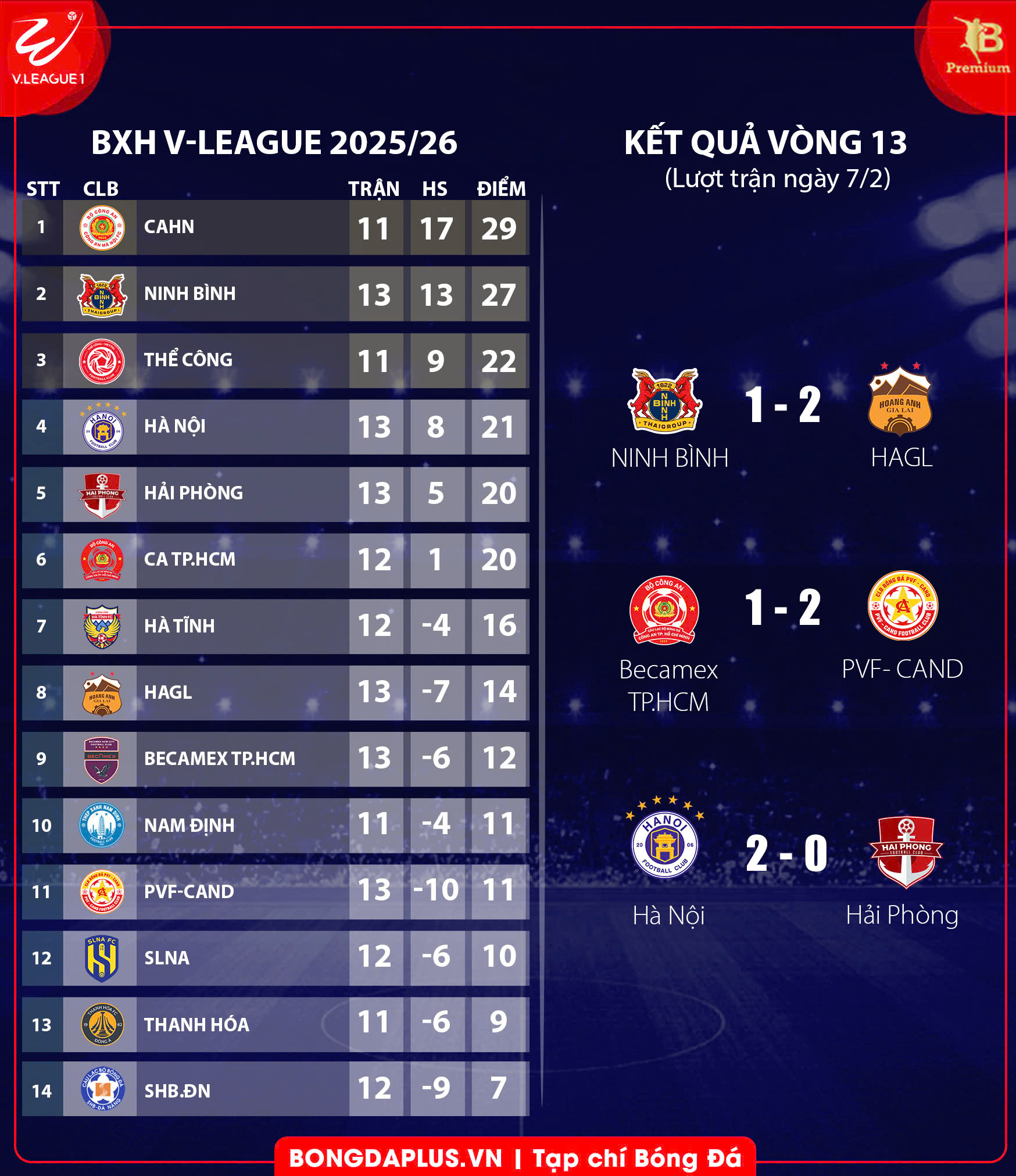 Thắng chung cuộc 2-0, CLB Hà Nội vượt lên trên chính Hải Phòng để đứng thứ 4 chung cuộc sau lượt đi V.League 2025/26. Đội bóng Thủ đô vẫn còn kém đội đầu bảng CLB Công an Hà Nội tới 8 điểm và thi đấu nhiều hơn 2 trận. Dẫu sao, hy vọng đua vô địch V.League 2025/26 với Hà Nội đã sáng sủa hơn trông thấy.