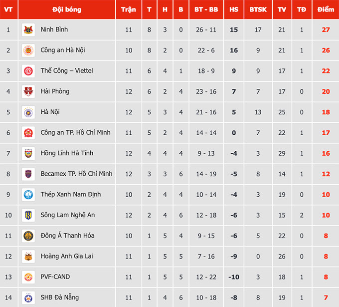 Thắng chung cuộc 2-1, Thể Công Viettel vượt qua chính Hải Phòng để chiếm lấy vị trí thứ 3 trên BXH. Đội bóng áo lính tạm thời thu hẹp khoảng cách điểm số với 2 đội đầu bảng gồm Ninh Bình, Công an Hà Nội xuống còn từ 4-5 điểm. Thầy trò HLV Velizar Popov còn nguyên cơ hội bám đuổi tới ngôi vương.