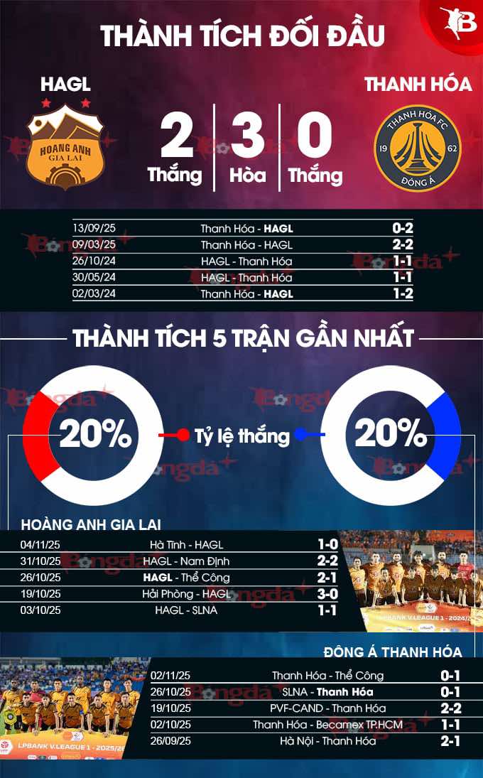 HAGL được xem là “khắc tinh” với Thanh Hóa. Theo đó, trong 10 lần so tài gần nhất, HAGL duy trì thành tích bất bại trước đội bóng xứ Thanh, với 5 chiến thắng và 5 trận hòa.