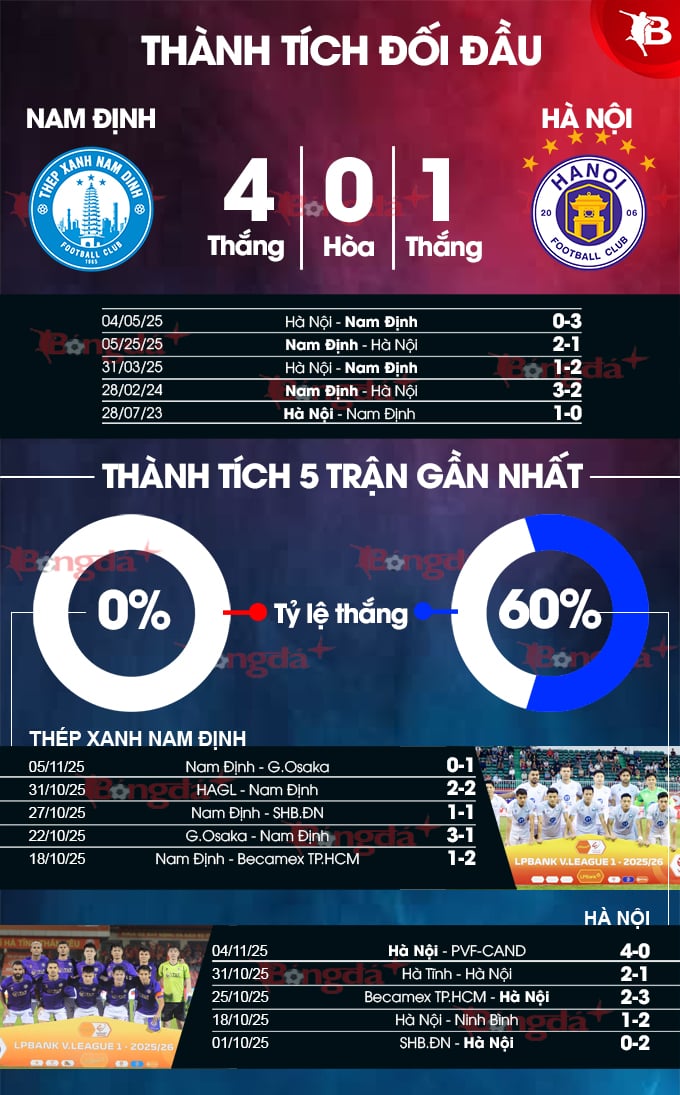 Sau 10 vòng đấu, Nam Định có 9 điểm và chỉ hơn nhóm cuối 2 điểm – một khoảng cách mong manh khi lịch thi đấu sắp tới khá căng thẳng. Ở vòng 11, Nam Định sẽ được chơi trên sân nhà để tiếp đón Hà Nội. Trong 2 mùa giải gần đây, Nam Định còn ngán mỗi khi gặp Hà Nội. Thậm chí, đội bóng thành Nam còn cho thấy sự áp đảo về thành tích đối đầu. 4 trận gần nhất gặp nhau, Nam Định toàn thắng cả 4. Một thống kê rất ấn tượng của Nam Định trước CLB Hà Nội.