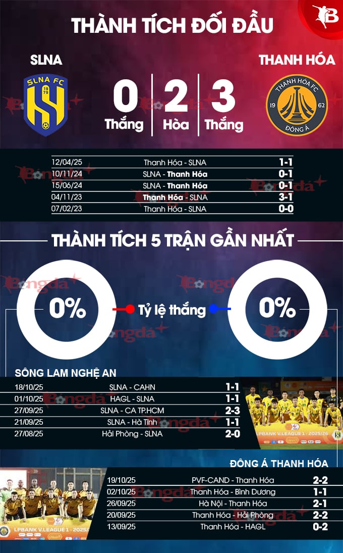 Thanh Hóa được xem là “khắc tinh” với SLNA. Trong 5 trận gần nhất, Thanh Hóa thắng 3 và hòa 2 trước SLNA. Dù vậy, đấy là những thống kê trong quá khứ. Hiện tại, đội bóng xứ Thanh đang đối diện với rất nhiều khó khăn. Đây là cơ hội để SLNA đi tìm kiếm chiến thắng thứ 2 kể từ đầu mùa.