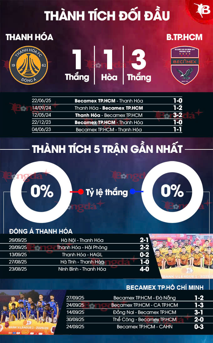 Phân tích phong độ Thanh Hóa vs Becamex TP.HCM