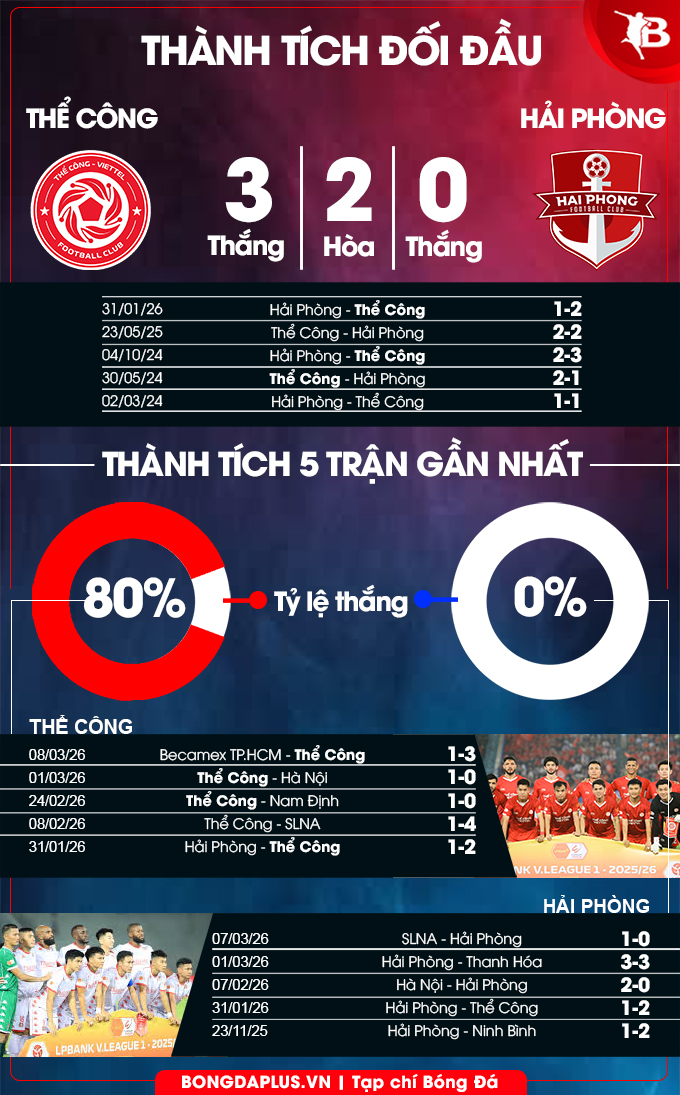 Bongdaplus dự đoán Thể Công vs Hải Phòng