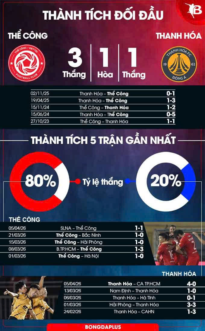 Phân tích phong độ Thể Công vs Thanh Hóa