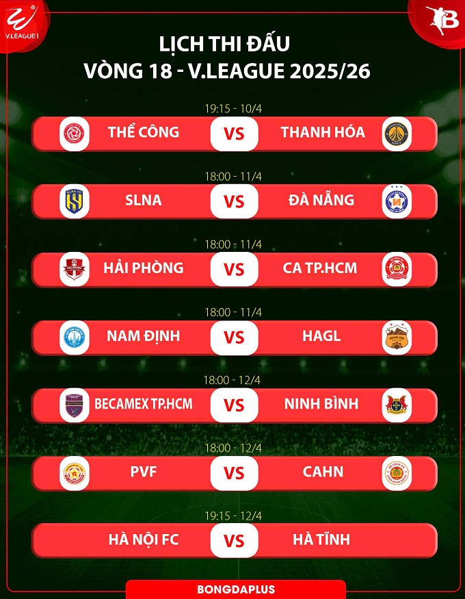 Trên sân Bình Dương, một trận thắng trước Becamex TP.HCM cũng là cách Ninh Bình khẳng định đã lấy lại phong độ cần thiết sau thắng lợi trước HAGL để cắt đứt chuỗi 5 trận không thắng ở V.League. Trên sân nhà, áp lực mất vị trí nhì bảng của Thể Công sẽ gia tăng nếu như không giành được chiến thắng trước Thanh Hóa.