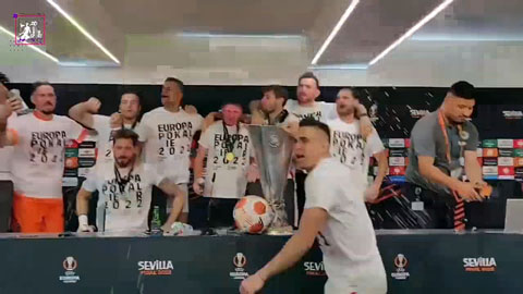 Cầu thủ Frankfurt lao vào phòng họp báo quậy tưng bừng sau chức vô địch Europa League