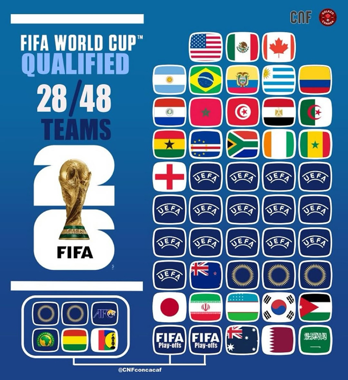 Như vậy, sau hơn một năm thi đấu khốc liệt, 28 đội bóng đã chính thức ghi tên vào danh sách dự World Cup 2026, trong tổng số 48 đội sẽ tranh tài tại giải đấu lớn nhất lịch sử FIFA. Những tấm vé còn lại sẽ được phân định trong các lượt trận cuối cùng của vòng loại tại châu Âu, châu Phi và các trận play-off liên lục địa diễn ra đầu năm 2026.