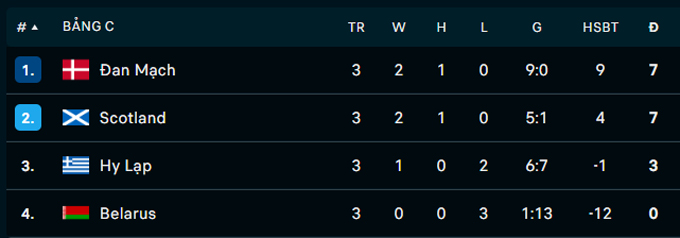 Chuyển sang bảng C, chạm trán đội cuối bảng Belarus ở lượt trận thứ 3 Đan Mạch dù không có được thắng lợi tưng bừng như Áo nhưng đội bóng này cũng có được niềm vui với kết quả vô cùng chênh lệch. Ngay phút 14, Victor Froholdt đã đưa "Những chú lính chì" dẫn 1-0.