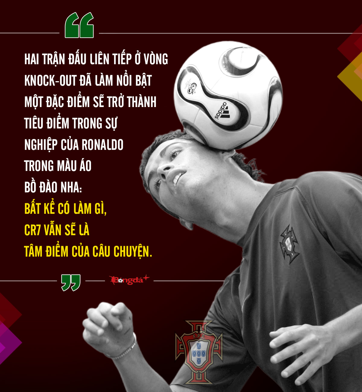 Nhờ mức độ thể lực đáng kinh ngạc và khả năng phục hồi chấn thương, chỉ 6 ngày sau, Ronaldo đã có mặt trong đội hình khi Bồ Đào Nha đánh bại Anh ở vòng tứ kết trong loạt sút luân lưu - Ronaldo thực hiện thành công lượt sút của mình một cách điềm tĩnh.