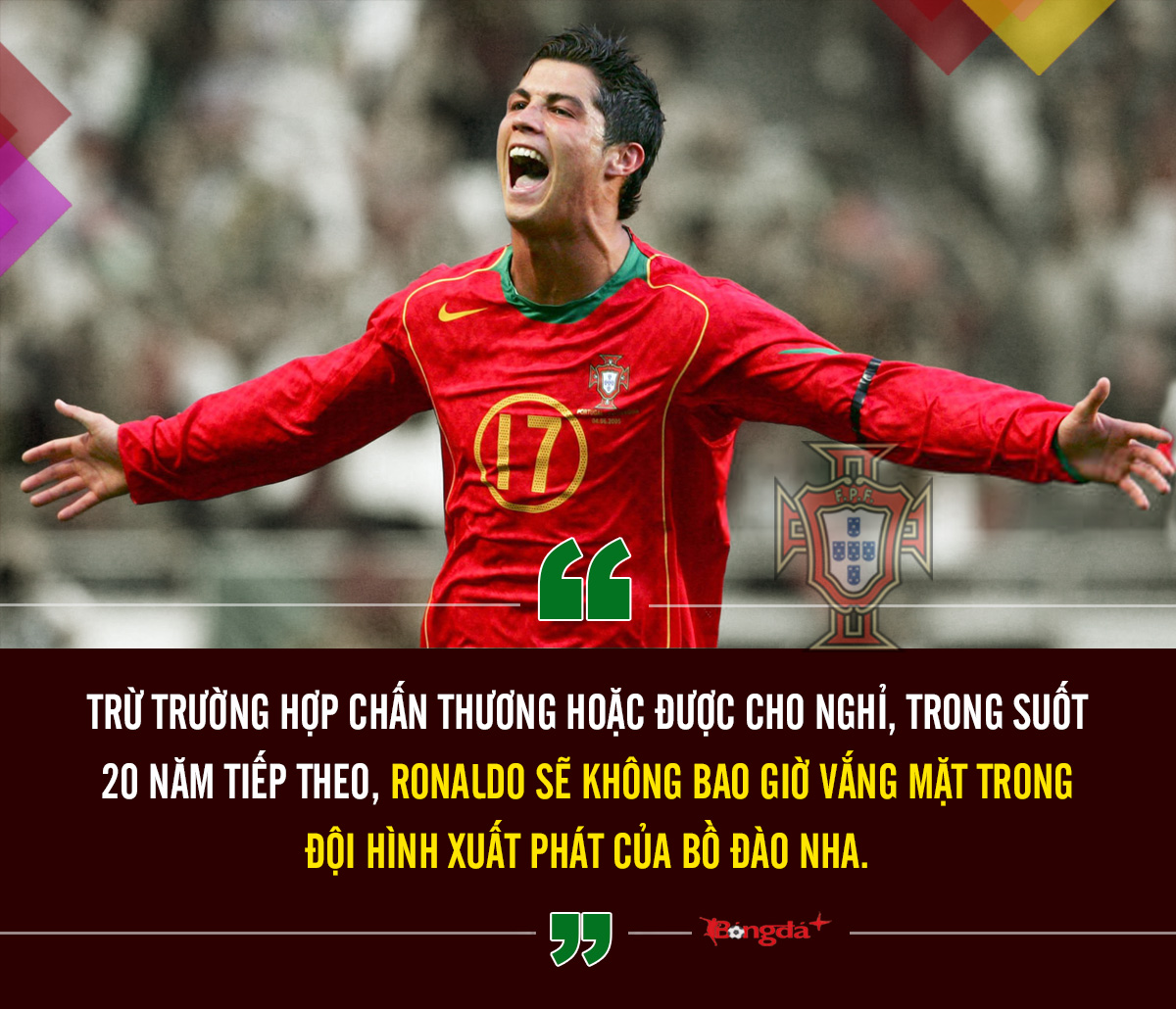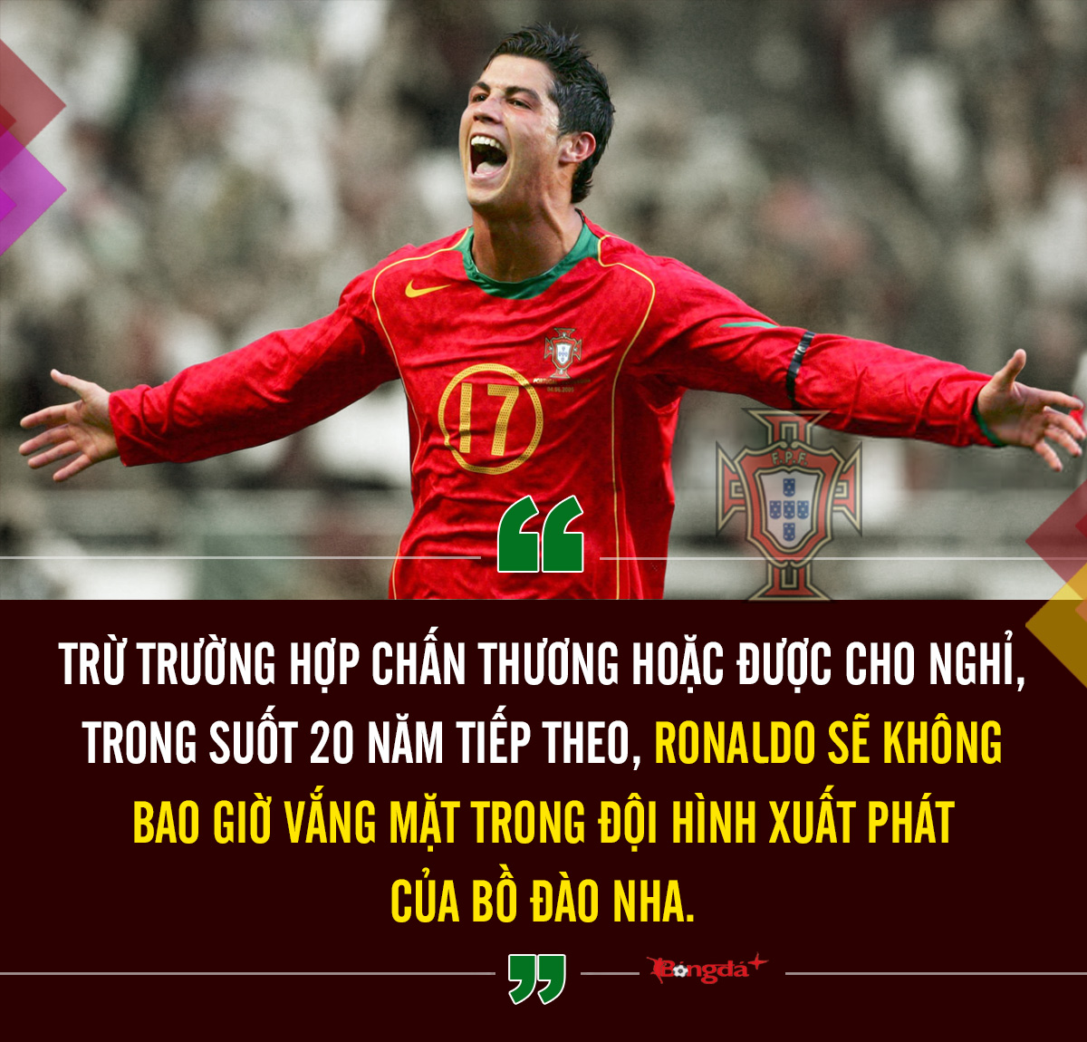 45 phút đó là đủ để thuyết phục Scolari rằng Ronaldo đã thuộc về đẳng cấp này. Trừ trường hợp chấn thương hoặc được cho nghỉ, trong suốt 20 năm tiếp theo, Ronaldo sẽ không bao giờ vắng mặt trong đội hình xuất phát của Bồ Đào Nha.