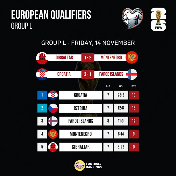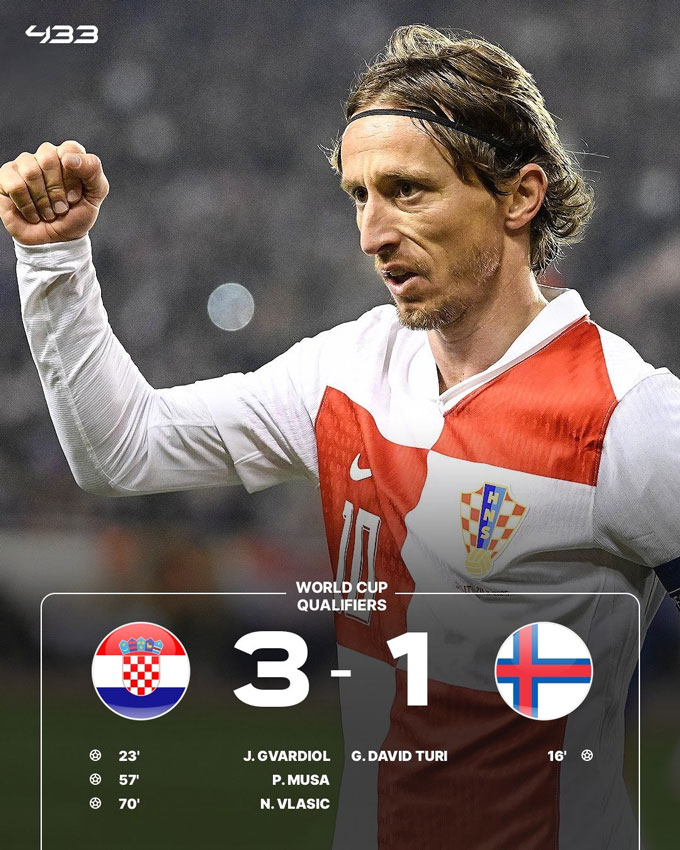 Sang hiệp 2, Musa và Vlasic đã ghi bàn ở các phút 57 và 70 để giúp Croatia có chiến thắng 3-1 và chính thức giành quyền dự VCK World Cup 2026 với ngôi đầu bảng L. Họ có 19 điểm sau 7 trận, hơn đội xếp thứ hai là CH Czech tới 6 điểm trước lượt trận cuối.