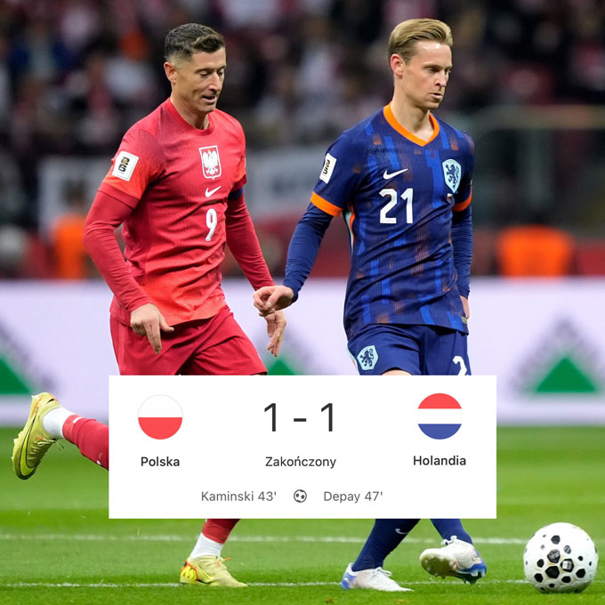 Trong khi đó, Hà Lan lại chỉ có được trận hoà 1-1 với Ba Lan và cũng chưa có vé chính thức. Kaminski mở tỷ số cho Ba Lan ở phút 43 trước khi Depay gỡ hoà ở phút 47.
