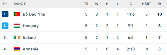 Bảng đấu này vẫn còn đôi chút nóng bỏng. Bồ Đào Nha dẫn đầu với 10 điểm và tự quyết khi gặp Armenia – đội cuối bảng với 3 điểm. Nếu thắng, Bồ Đào Nha có 13 điểm và chắc suất đi tiếp. Phía sau, Hungary (8 điểm) và Ireland (7) quyết đấu giành vị trí nhì bảng. Nếu Hungary thắng, họ sẽ có 11 điểm. Nếu Ireland thắng, họ có 10 điểm và thậm chí có thể tranh luôn ngôi đầu nếu Bồ Đào Nha sảy chân. Lượt cuối hứa hẹn nghẹt thở, ngoại trừ Armenia chắc chắn đứng cuối.