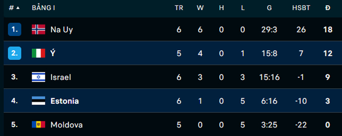 Đây cũng là chiến thắng thứ 6 của Haaland và đồng đội trong chiến dịch vòng loại World Cup 2026. Lúc này, Na Uy giữ vững ngôi đầu với 18 điểm, trong khi đội đứng thứ 2, Italia có 12 điểm và chơi ít hơn một trận.