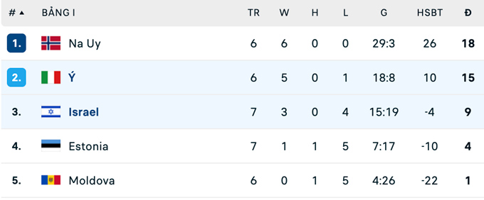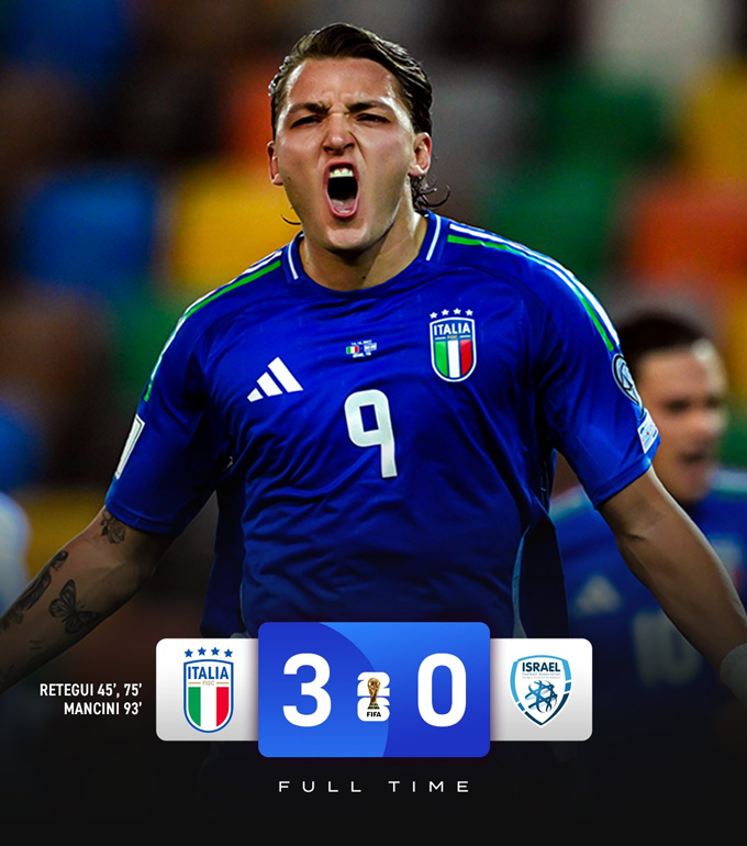 Với thắng lợi này, Italia vẫn đứng thứ 2, kém đội đầu bảng Na Uy 3 điểm. Dù cơ hội giành vé chính thức là khá hẹp nhưng Azzurri đã chắc suất giành vé play-off. Trong khi đó, Israel chính thức lỡ hẹn với World Cup kể từ lần duy nhất được tham dự vào năm 1970.