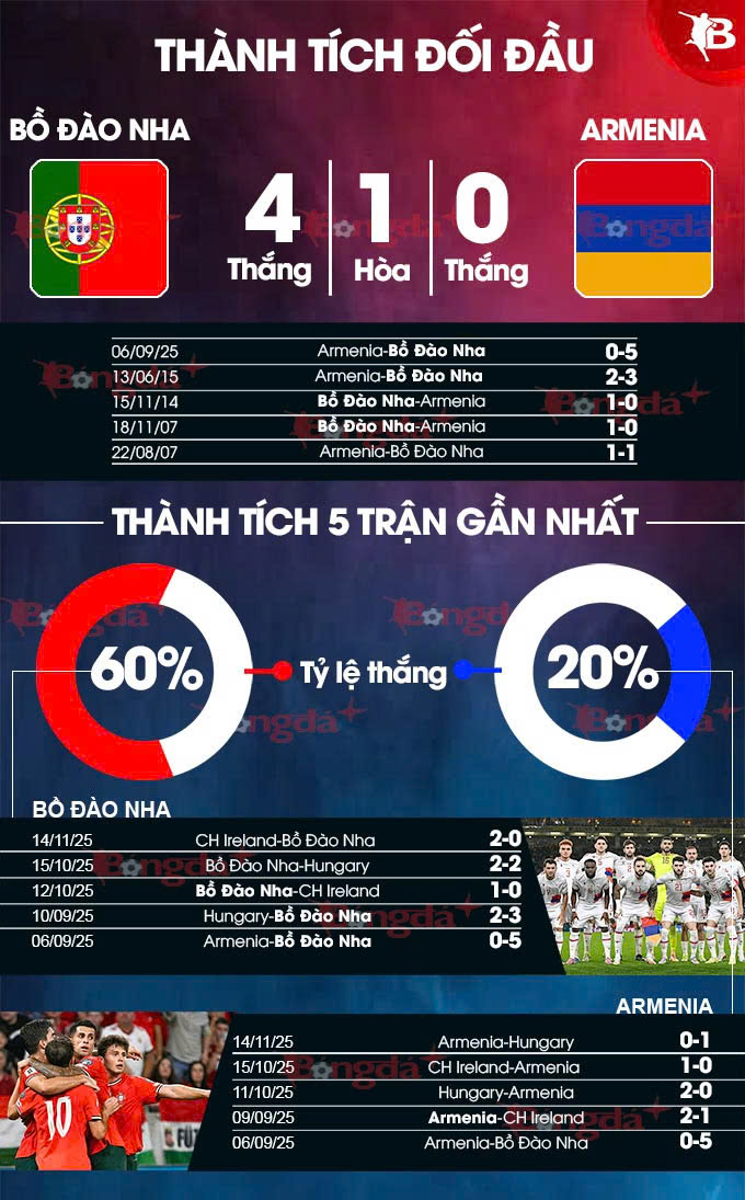 Phân tích phong độ Bồ Đào Nha vs Armenia