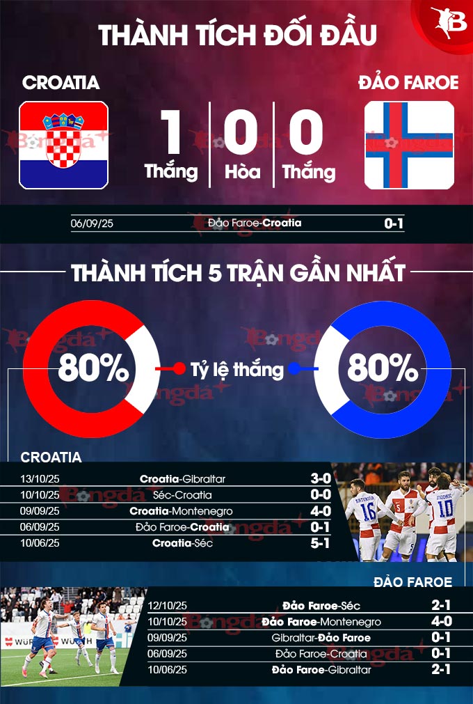 Đương nhiên, đây sẽ là trận đấu không hề dễ dàng đối với Croatia. Bởi Đảo Faroe cũng đang “vào phom”. Cụ thể, họ thắng 4/5 loạt trận gần đây tại vòng loại World Cup 2026 khu vực châu Âu. Nhờ vậy, Đảo Faroe đã vươn lên vị trí thứ 3 tại bảng L với 1 điểm kém Séc. Với cục diện ấy, thầy trò HLV Eydun Klakstein còn nguyên hy vọng tranh vé tham dự vòng play-off.