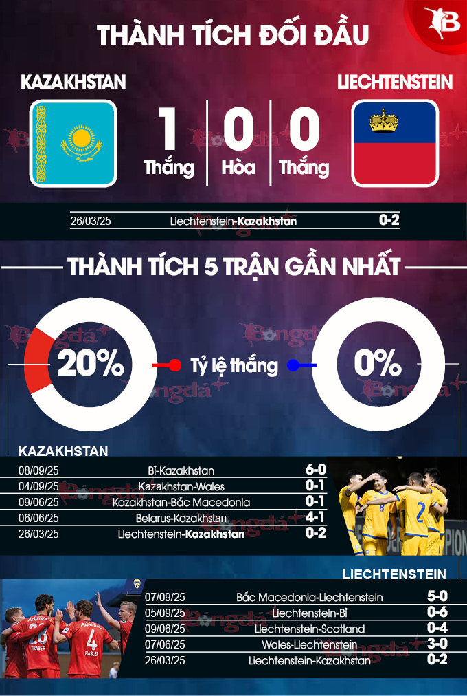 BongdaPlus dự đoán tỷ số Kazakhstan vs Liechtenstein