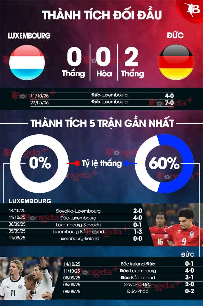 Phân tích phong độ Luxembourg vs Đức