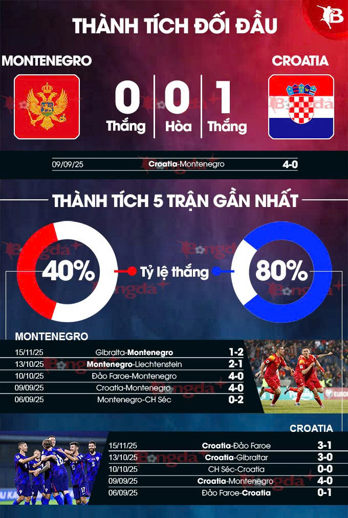 BONGDAPLUS dự đoán tỉ số Montenegro vs Croatia