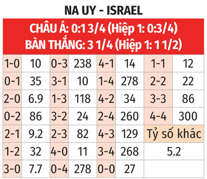 Bên cạnh đó, Na Uy có đội hình chất lượng hơn, nhưng Israel không phải là đối thủ dễ bị bắt nạt. Do đó, nhiều khả năng, Na Uy sẽ có 3 điểm ở trận này dù khá khó khăn.