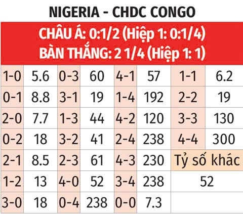 - CHDC Congo thắng châu Á: Nigeria không có duyên với tỷ lệ nhường 1/2 trái, khi không thắng 2 trận gần nhất xuất hiện, bao gồm trận gặp Gabon vài ngày trước. Với CHDC Congo, đội bóng này hiện thắng châu Á 5/8 trận gần đây cùng 2 trận đối đầu gần nhất.