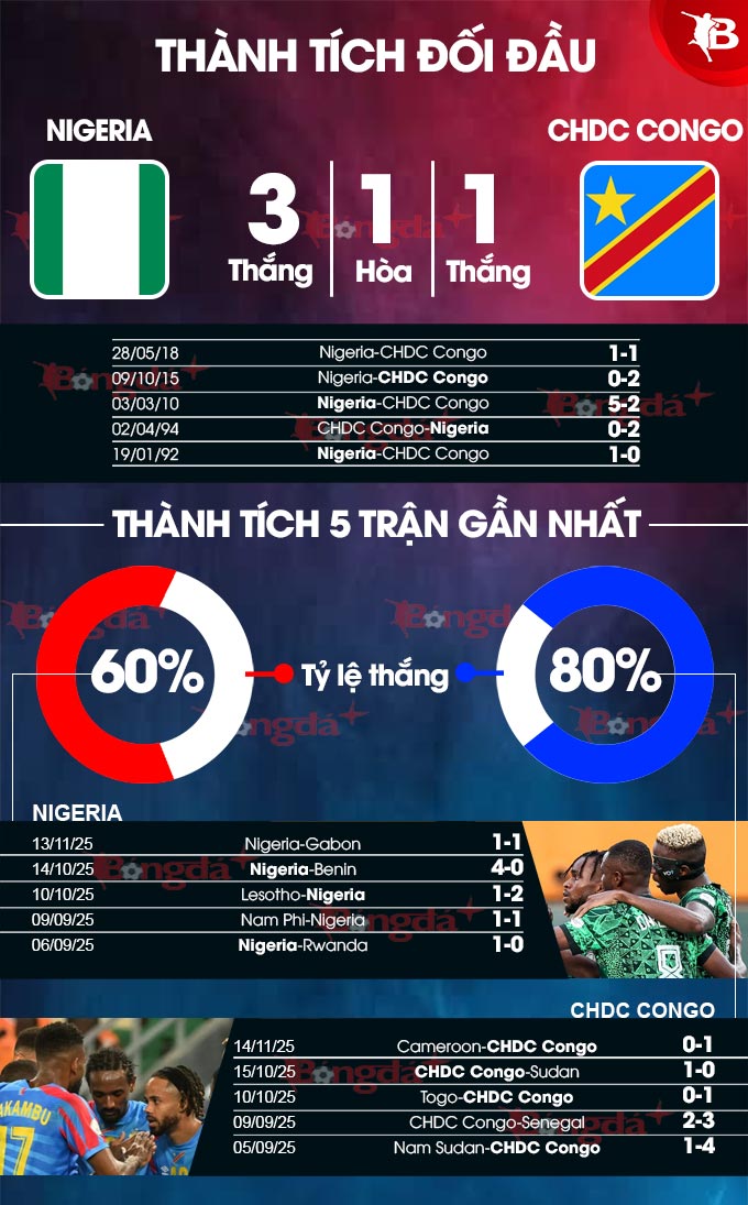 BONGDAPLUS dự đoán tỷ số Nigeria vs CHDC Congo