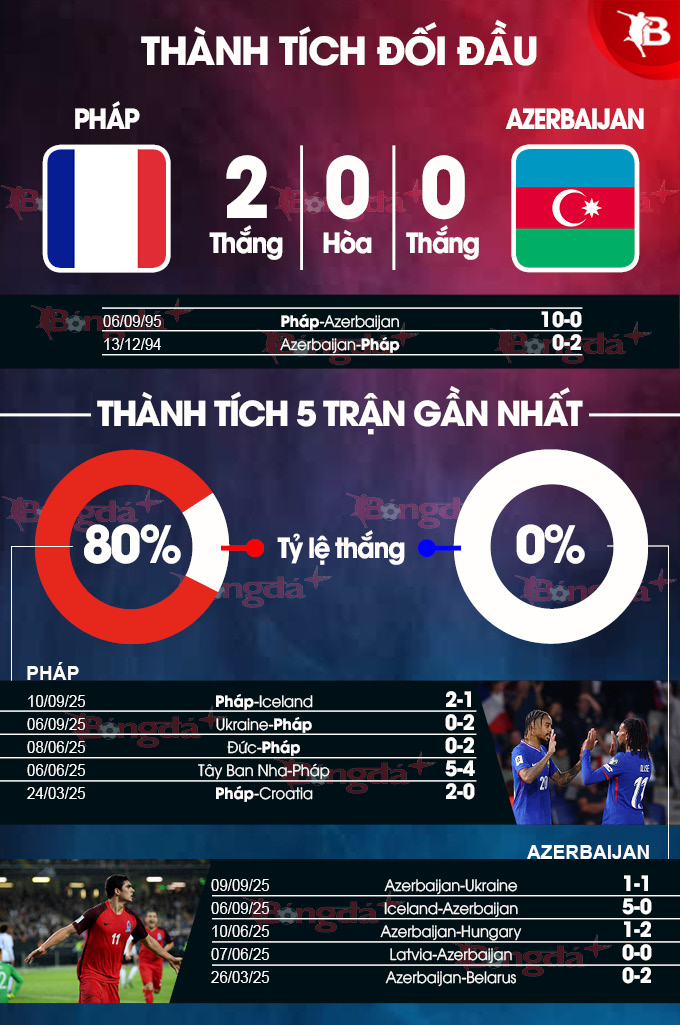BONGDAPLUS dự đoán tỉ số Pháp vs Azerbaijan